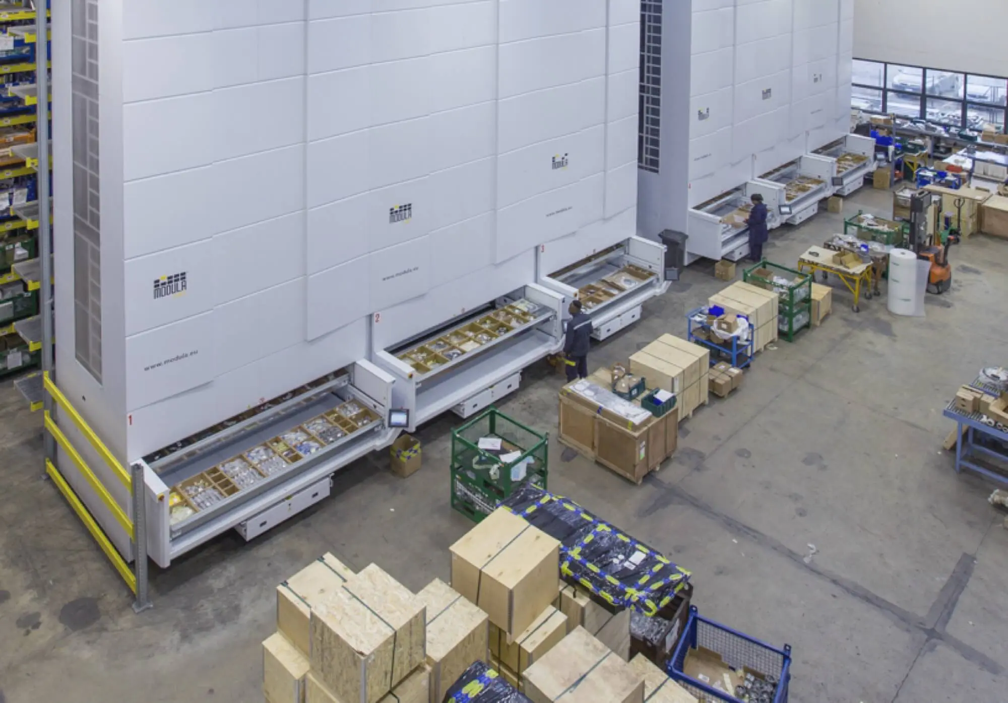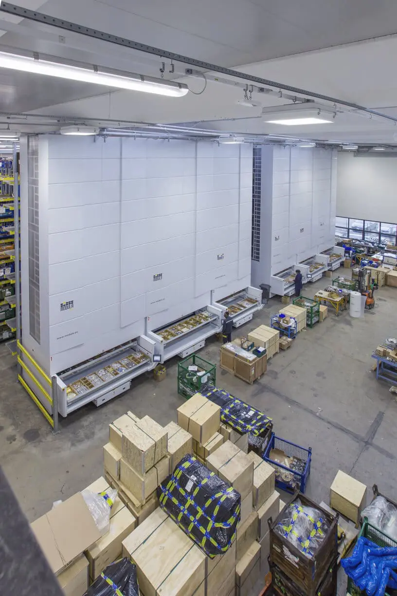 Modula Lift is the ideal solution to free up space in the distribution area while increasing efficiency, throughput, and operator retrieval security. It is known for its versatility and is used by companies of all sizes to store items of various shapes, weights, and sizes in all product areas.